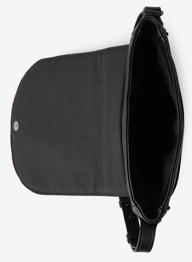Ženska torba srednje veličine sa podesivom naramenicom. Načinjena je od kombinacije materijala sa mekanim, umjetnim krznom na poklopcu, utisnutim Bench logom i zatvaranjem na magnetni gumb. Galvni pretinac dovoljno je prostran za sve svakodnevne sitnice koje Vam moraju bit pri ruci, a u unutarnji džepić sa patentnom pohranite mobitel, novac ili ključeve.