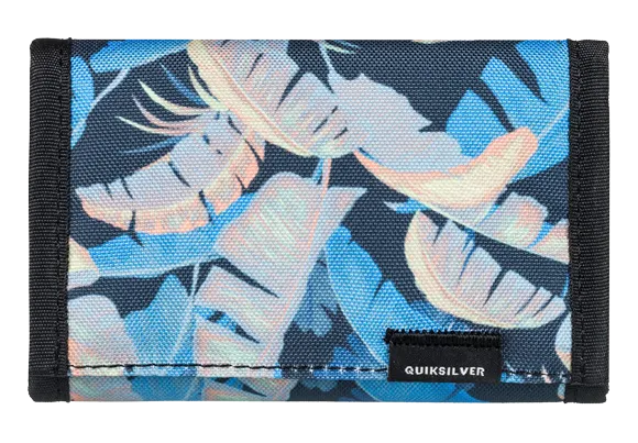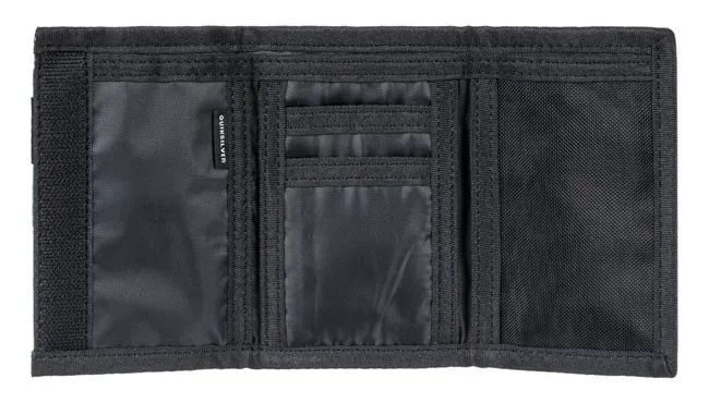Jednostavni trolisni novčanik koji dolazi u dvije veličine i veselim je ljetnih boja. Ima Quiksilver natpis s prednje strane, straga je pretinac za kovanice na patentno zatvaranje, a unutrašnjost je podijeljena na dio za novčanice, više proreza za kartice i mrežasti prozorčić za dokumente.