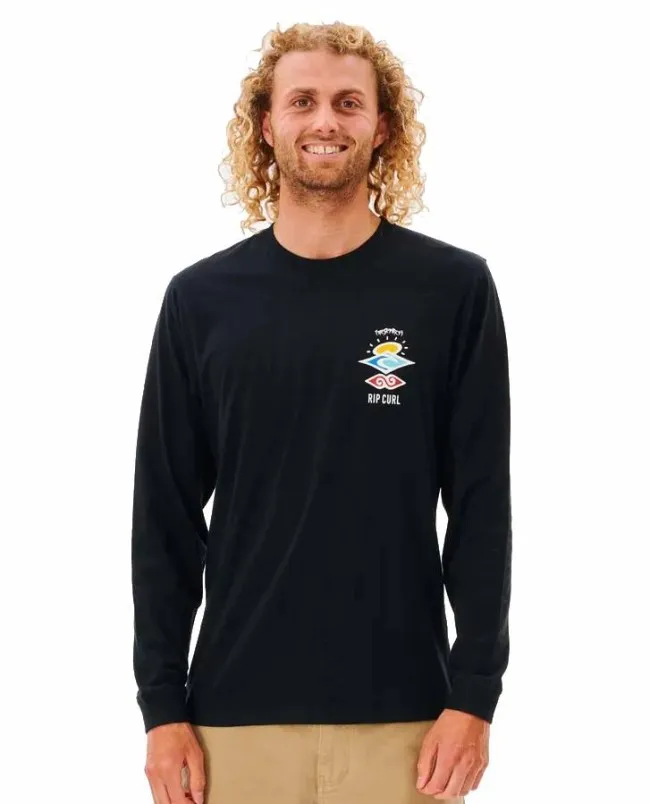 Juri za valovima u Search Icon Long Sleeve Tee, s utkanom etikedom i printom sprijeda i straga, za moderan i pustolovan surf izgled.