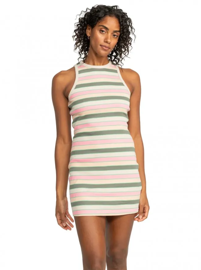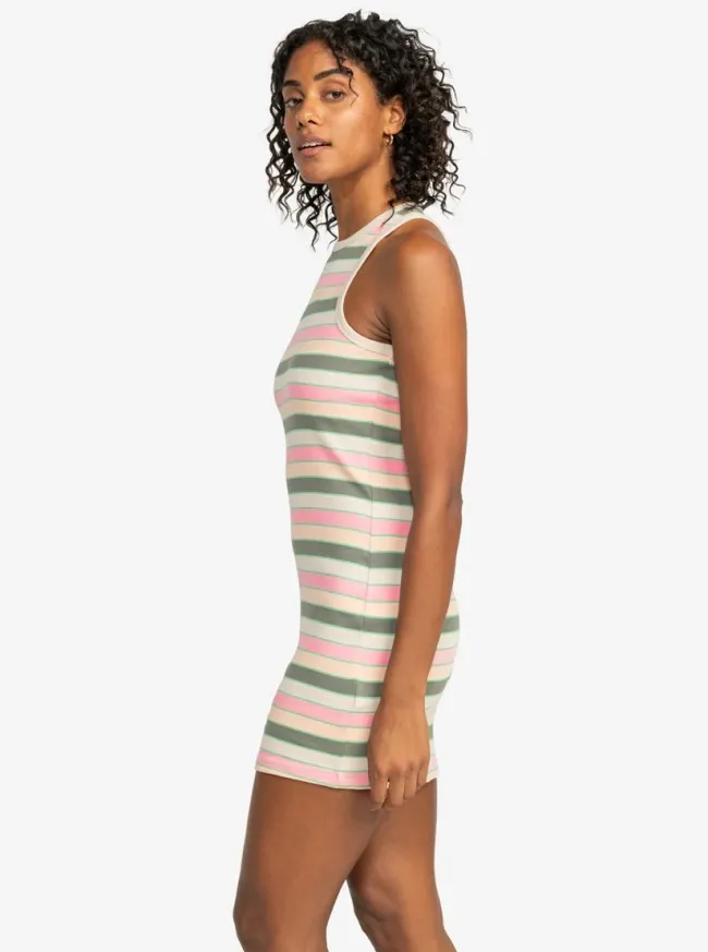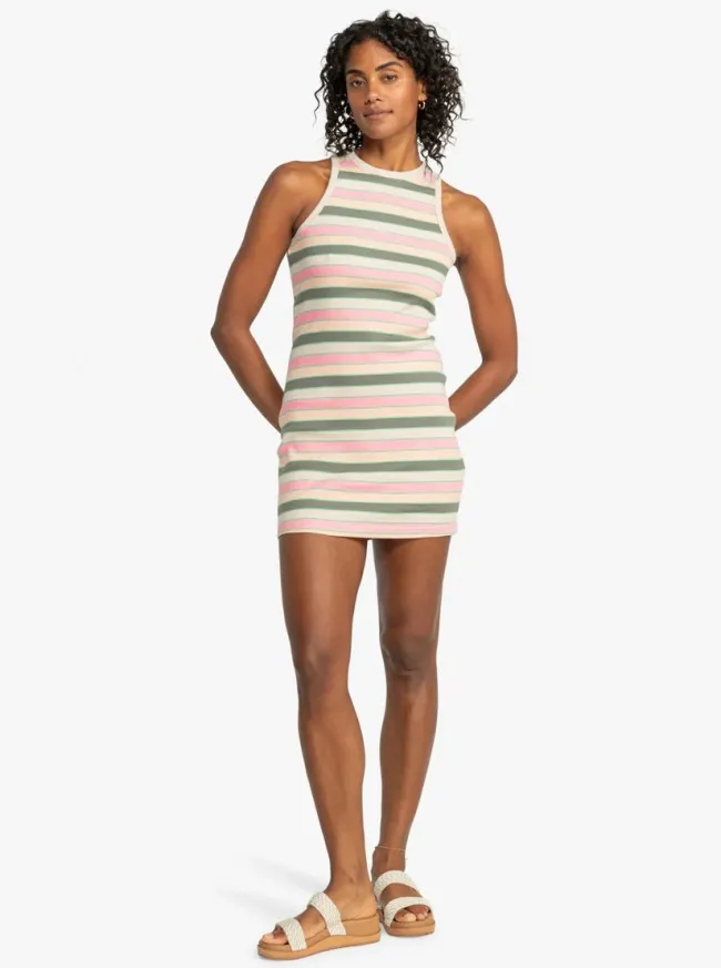 Doživite stil bez napora uz ROXY Back To Beautiful Dress, izrađenu od pamučne rebraste tkanine uz tijelo. Rastezljiva i na pruge, ova mini haljina ima visoki okrugli izrez, savršenu ravnotežu sportskog i zapanjujućeg.
