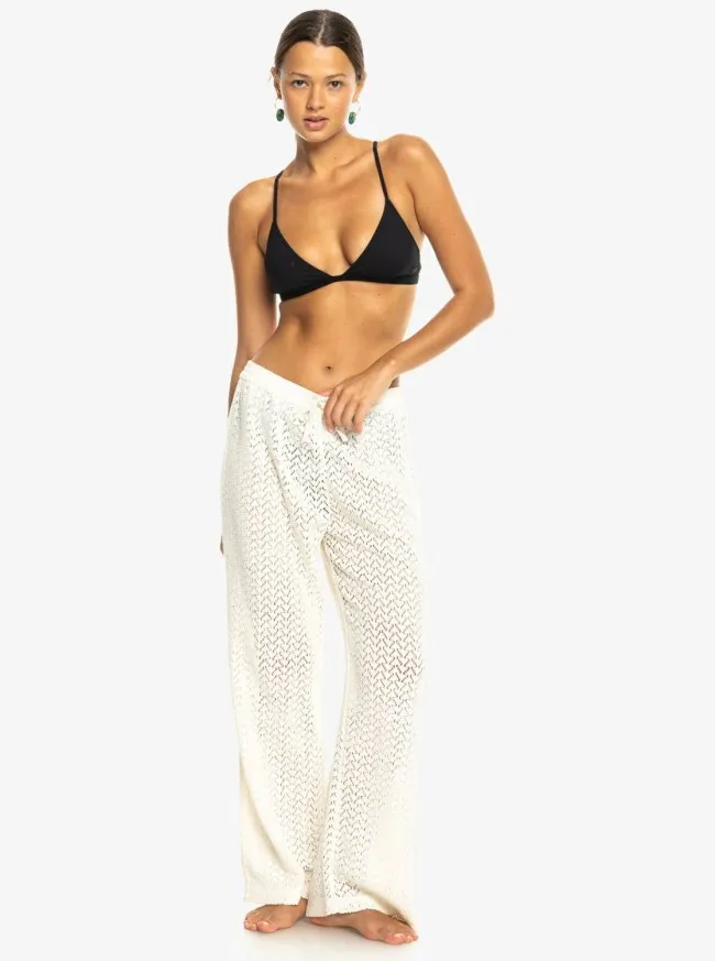 Roxy Mood Moving lagane su kroše hlače za plažu, idealne za nošenje preko kupaćeg kostima. Imaju opušten kroj, elastični struk s vezicom i prozračnu teksturu. Udobne i stylish, savršene su za ljetne šetnje i opuštanje na plaži.