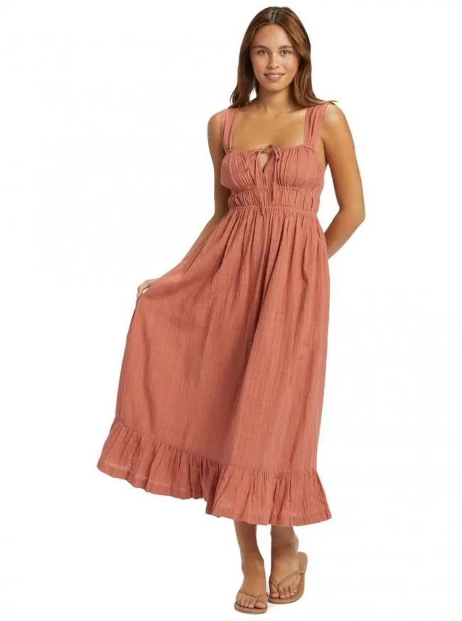 Izrađena od lagane tkanine od mješavine pamuka i viskoze, ROXY's Paradise Winds maksi haljina ima donji dio leđa s ukrštenim naramenicama za dašak privlačnosti. Dimljeni top u kombinaciji sa suknjom s volanima stvara sanjivu siluetu savršenu za svaku priliku.