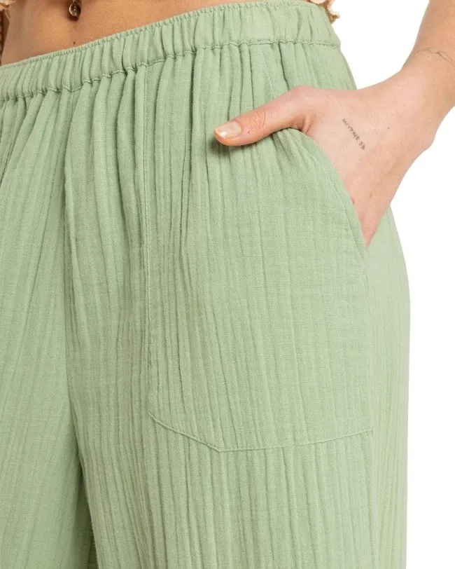 Roxy What A Vibe su lagane i udobne ženske hlače, idealne za ljetne dane i opuštene trenutke. Izrađene su od srednje teške dvostruke gaze od 100% organskog pamuka, pružajući prozračnost i mekoću tijekom nošenja.