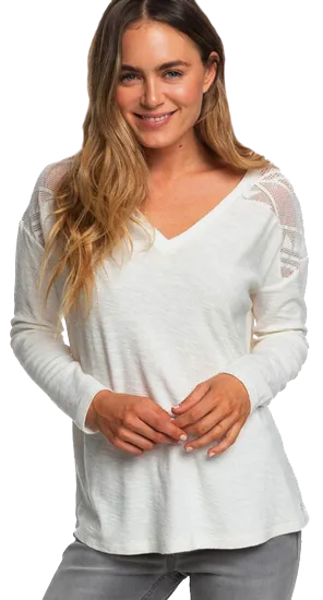 Nježna i romantična majica dugih rukava već sezonama ne izlazi iz mode. Ovogodišnji Roxy model s V izrezom ženstvena je i jako ugodna za nošenje kombinacija poliestera i pamuka s čipkastim detaljima na leđima i rukavima. Savršena je za senzualni dnevni look.