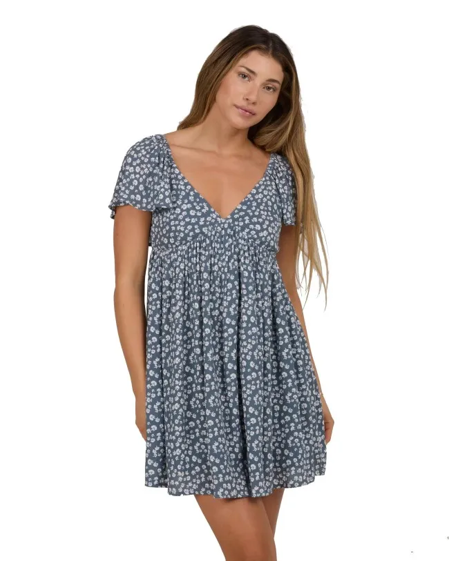 Mini dress with flutter sleeves and full hem